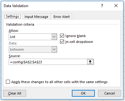 Because the OpenAPI sets some specific requirements for the value of each of the query string parameters, it is advised automatically to restrict the input fields to a limited set of values. This can be done using the Data Validation tool and a predefined list of AssetType and search result values, which are located on the config tab in the sample sheet. This functionality will be used throughout the tutorial series to prevent erroneous input and is advised for all applications in Excel.