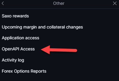 1. Log into SaxoTraderGO and navigate to Account → Other: