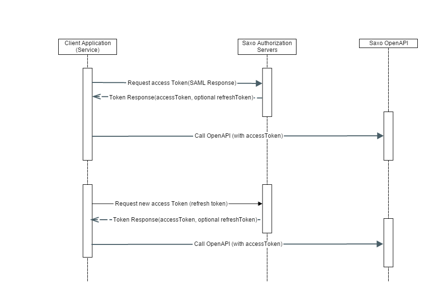 - A SAML2 EncryptedAssertion, encrypted with the Saxo Bank Encryptiopn certificate public key. The assertion carries the "secrets" used to authentication and token issuance:
