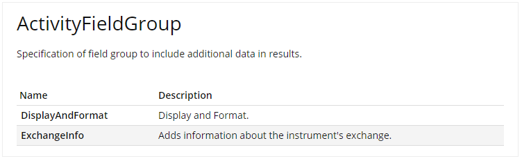 For subscriptions to Orders and Positions, you may specify two field groups, which will be returned in addition to the main message structure.