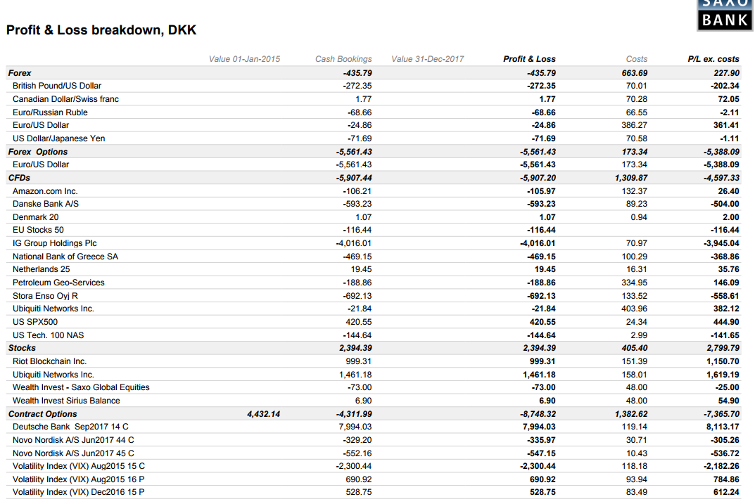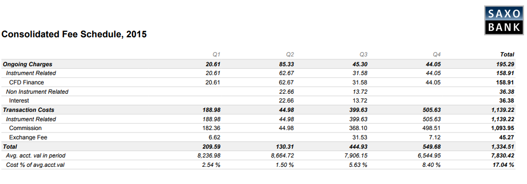 And a chart illustrating cost effect on Pnl ( from Saxo Portfolio report)