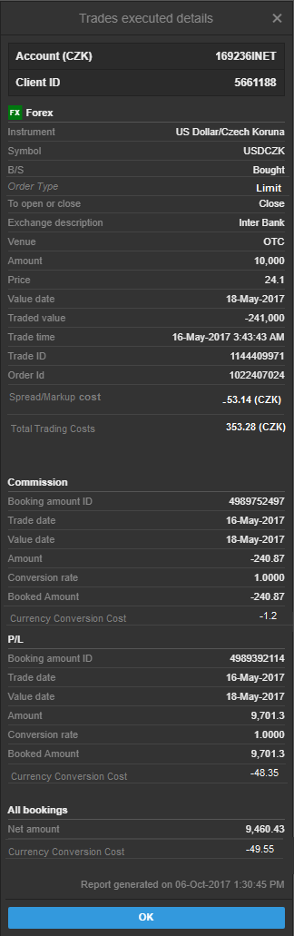 - (bookings endpoint) Sum of currency conversion for all bookings for the trade, including bookings not classified as transactioncosts